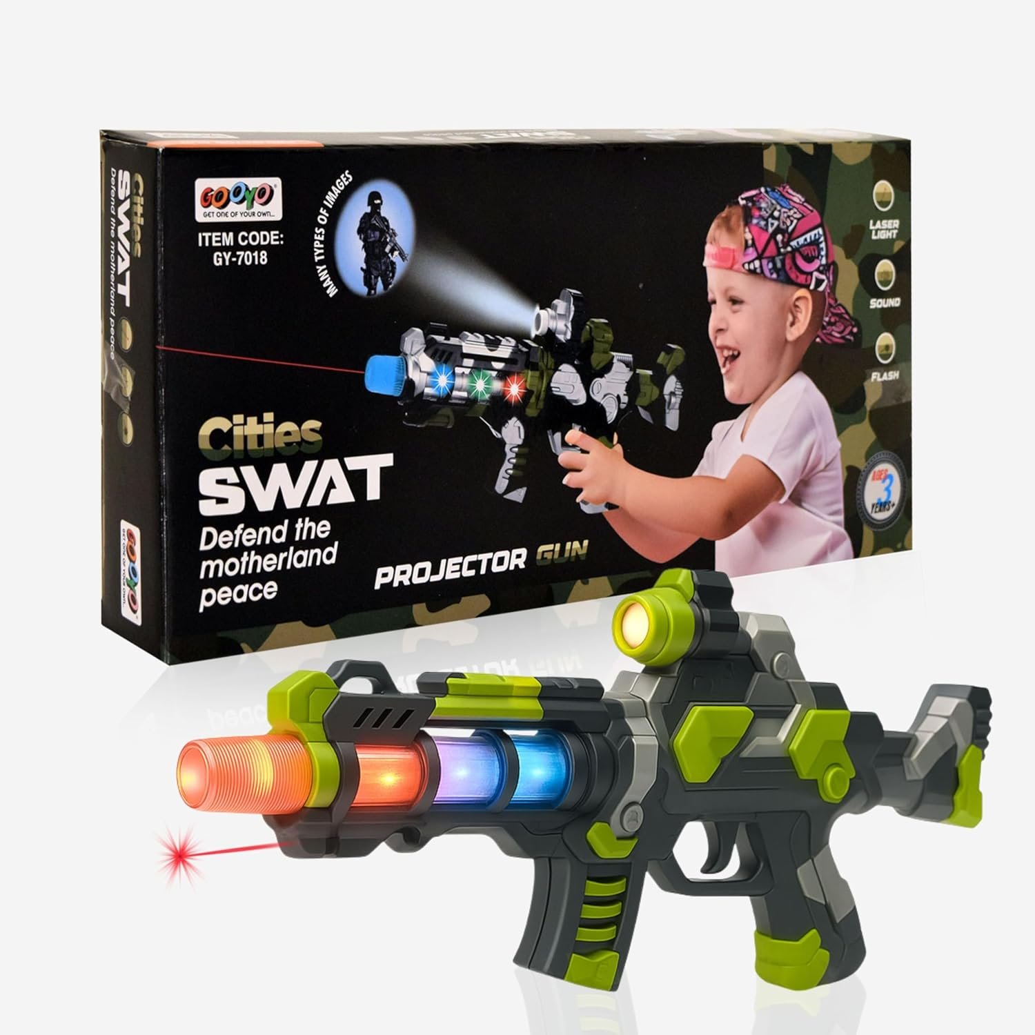 Introducing the Gooyo Swat Projector Gun Toy, a versatile and interactive musical toy gun designed to ignite your child’s passion for roleplay and creativity, exclusively available at Anspan E-Store.